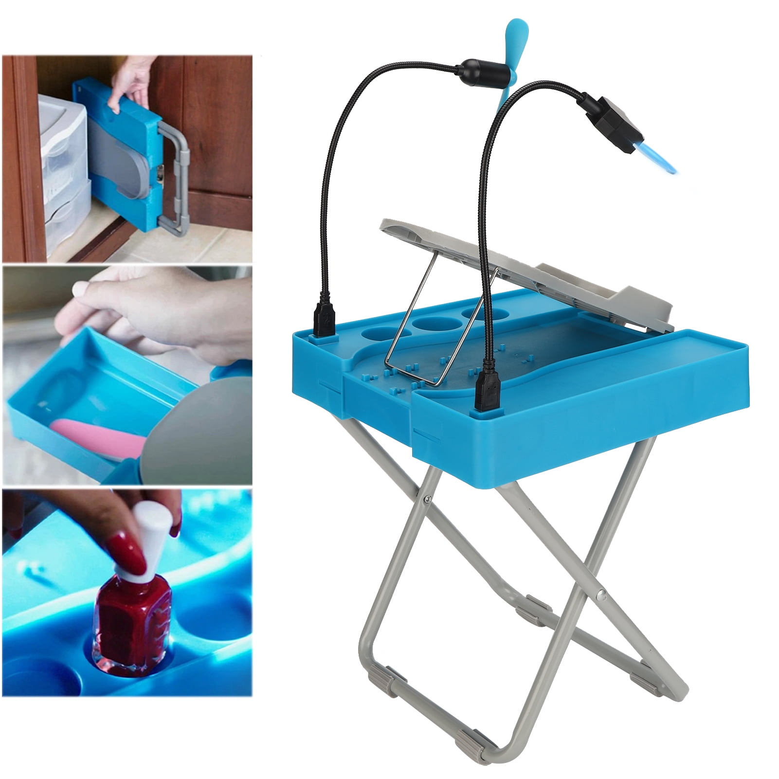 Salon Step Deluxe Beauty Footrest For Easy At Home Pedicures No Bending Or Stretching Led Magnifier Drying Fan Adjustable Foot Rest Non Slip Legs Built In Storage Gel Comfort Cushion Walmart Com